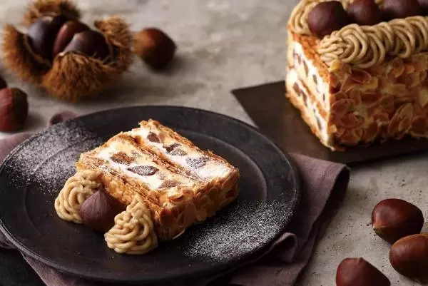 その時々に旬を迎える食材をふんだんに使った、キハチの人気スイーツ「キハチのパイシリーズ」。秋のラインナップに加わる「KIHACHIのマロンパイ」は、苺が美味しい季節にだけ展開されている「KIHACHIのナポレオンパイ」に匹敵するほどの人気を誇る、秋の定番メニューだ。