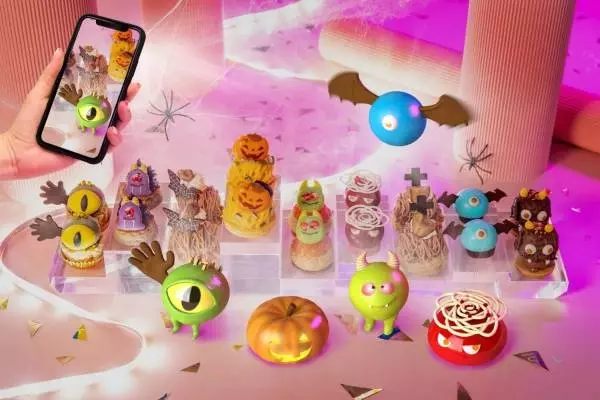 さらに、モンスターを象ったカラフルなスイーツも目白押し。ブラックベリージャムやミントなどすっきりとしたアクセントを効かせたムースや、紫芋チーズケーキ、ダブルベリーシュークリームなど、多彩な味わいのスイーツ9種がラインナップする。尚、スマホをかざすとモンスターたちが動き出す、AR機能による楽しい仕掛けも要チェックだ。