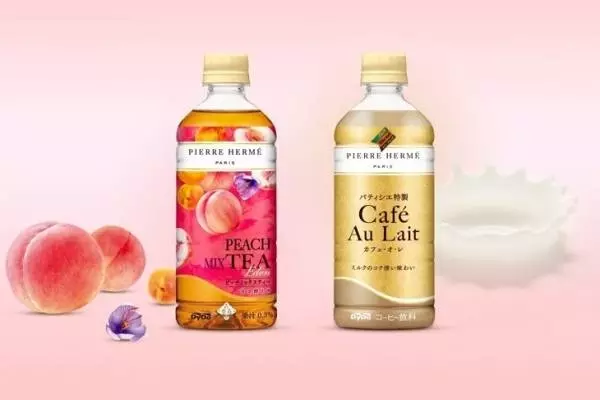 ピエール・エルメとダイドーによる人気ペットボトル飲料「ピエール・エルメ×贅沢香茶 ピーチミックスティー」「ピエール・エルメ×ダイドーブレンド パティシエ特製カフェ・オ・レ」が、華やかな香りと味わいにリニューアル。