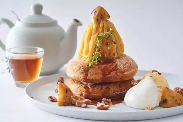 限定パンケーキは、秋に旬を迎えるさつまいもの中でも圧倒的な甘みを誇る安納芋に、隠し味としてはちみつを加え、コクをプラス。また、濃厚な安納芋クリームと、発酵バターを使用したほんのり塩味のバタークリームとのかけあわせにも注目だ。