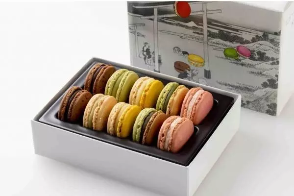 マカロンは単品の他、ちょっとしたギフトにぴったりな3個詰め合わせ、Made in ピエール・エルメの人気フレーバーと共にアソートした6個、10個詰め合わせがラインナップする。