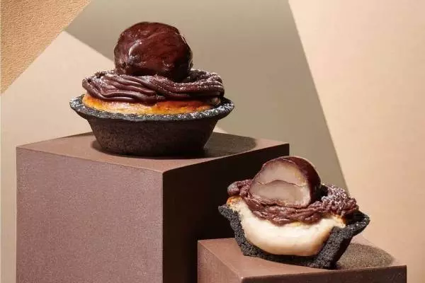 ブラックココアを配合したタルトカップに、ラム酒が香るマロンペーストを加えたチーズムースを入れて焼き上げ、仕上げにほろ苦いチョコレートクリームと、大粒の「やまえ栗」の甘露煮をトッピング。上品な甘みの和栗、ラム酒が香るマロンチーズムース、そしてビターなチョコレートが織りなす、贅沢な秋のハーモニーが楽しめる一品となっている。