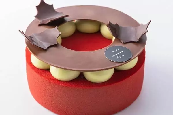 ピエール マルコリーニ22年クリスマスケーキ、”濃厚チョコムース×ピスタチオ”の真っ赤なケーキ
