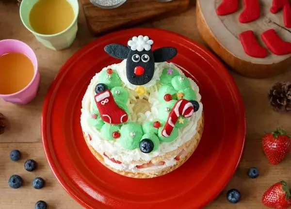 「ひつじのショーン」“赤いグッズ”のお菓子を飾り付けた22年クリスマスケーキ、吉祥寺で限定発売