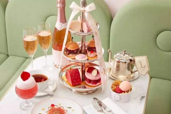 そんなラデュレ 渋谷松濤店のアニバーサリーを記念し、アフタヌーンティー「ローズ デ ヴァン」が登場。渋谷松濤店の基調となっているピンクカラーや、ラデュレを象徴するバラをイメージした華やかなパティスリーやセイボリーを用意する。