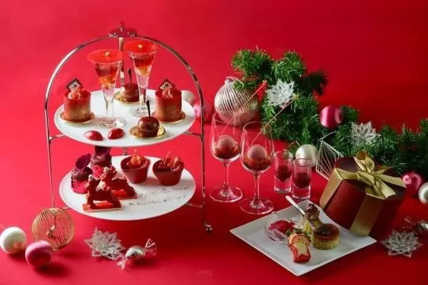“ギフト”テーマの赤で彩られたクリスマスアフタヌーンティー