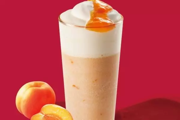 「ジョイフルメドレー アプリコット & ムース ティー ラテ」は、新たに開発された「ジョイフルメドレー フルリーフ」のティーラテに、アプリコットのフレーバーを加えたドリンク。「ジョイフルメドレー フルリーフ」のティーをベースに仕上げたふんわりムースとアプリコットソースをトッピングすることで、さらに華やかな香りと味わいをプラスしている。