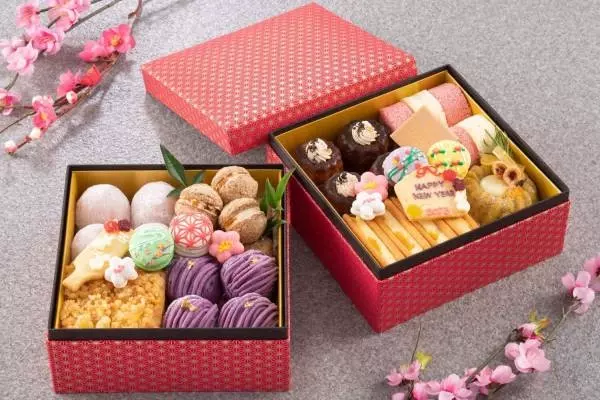 シェラトン都ホテル大阪「スイーツおせち」梅形マカロンや絵馬型クッキー入りの"スイーツ重”