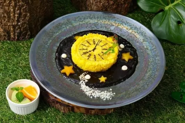注目は、ネバーランドへ向かうピーター・パンをイメージした「行こう、ネバーランドへ!カレー」。時計を表したライスの中にはグリル野菜が入っており、崩しながら味わうことができる。