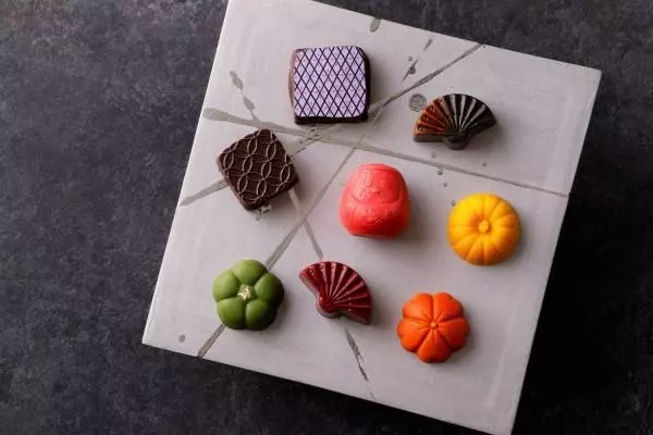 中でも注目は、見た目にも味わいにも和のエッセンスを詰め込んだ「舞い扇」。箱を開けた瞬間に思わず笑みがこぼれるダルマや末広がりの扇、梅、菊の花など、縁起ものを表現した。フレーバーには、さわやかな蜜柑のピューレや、豊かな柚子の風味を感じられるガナッシュ、抹茶&ごまの組み合わせを楽しめるボンボンなど、和素材と芳醇なチョコレートの組み合わせを楽しめるラインナップが揃う。