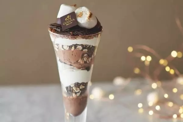 ゴディバカフェ(GODIVA café)から冬限定パフェ「ゴディバチョコレート&マシュマロパフェ」が登場。2022年12月1日(木)よりゴディバカフェ全店にて発売される。