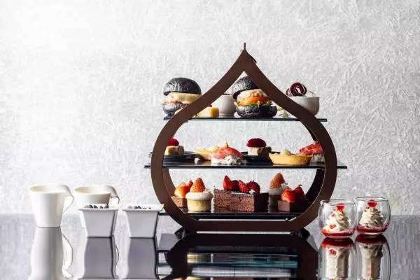 さらに、白いマンドリアーノチーズがかかったパテ&野菜を、黒いバンズでサンドしたミニビーフスライダーなど“ブラック&ホワイト”をテーマにしたセイボリーも揃うほか、人気のワゴンサービスでは黒と白のスコーンやサンドイッチ、ベーグルなどを好きなだけ楽しめる。