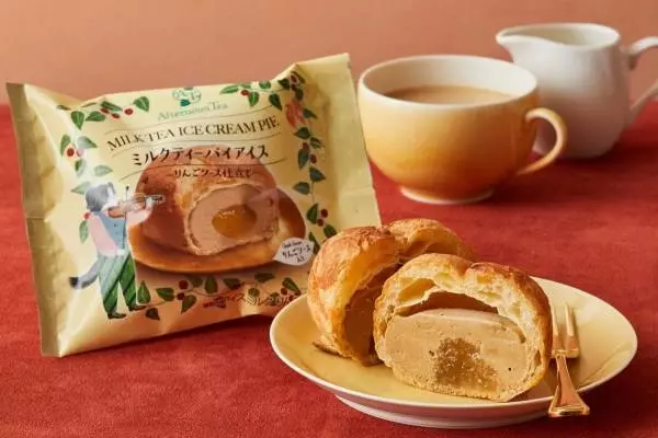 注目のアイスは、香ばしく焼き上げたパイシュー生地に、果肉入りりんごソースとアールグレイの香り豊かなミルクティーアイスを詰め込んだ「ミルクティーパイアイス~りんごソース仕立て~」。アップルパイと紅茶を一緒に楽しんでいるかのような優雅なティータイム気分を味わえる。