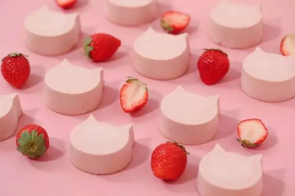 “ねこの形”のチーズケーキ「にゃんチー いちご」ピンク&手のひらサイズの苺風味
