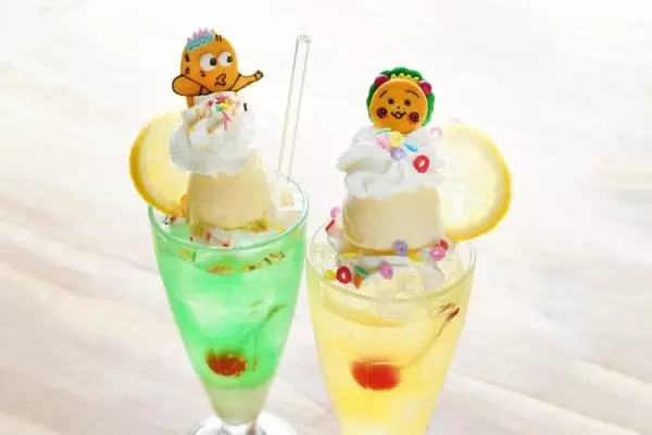 「コジコジのナポリタン」や「コジコジ&次郎のクリームソーダ」をはじめ、やかんくんやペロちゃん、おかめちゃんと「問答えんぴつ」のスイーツメニューも登場。その他、キッズメニューも用意する。
