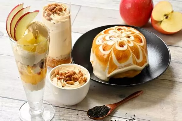 このほか、りんごコンポートや紅茶クリーム、チーズケーキ、青森産りんごアイスを重ねた「パフェ 北海道りんごと紅茶」、すっきりとした甘さのミルクティーにサクッとした食感のりんごを合わせた「アップルティーラテ」など、りんごと紅茶が織りなす至福のハーモニーが魅力のメニューが揃っている。