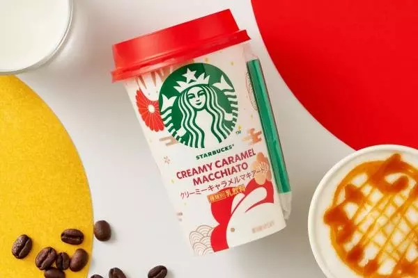 スターバックス新作チルドカップ「クリーミーキャラメルマキアート」“うさぎ”の干支デザインカップで