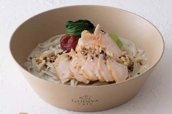 日本上陸50周年を機に、日本中の様々な地域・食材・伝統工芸などに焦点を当てたコラボレーション企画を展開しているゴディバ。今回は、その一環で行われているゴディバ カフェと福井県のコラボレーション第5弾として、福井県の名産である蕎麦をアレンジしたヌードルメニュー「スモークチキンと豆乳出汁の蕎麦」がラインナップに加わる。