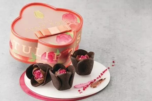 注目は、ブランド代表作「チューリップローズ」の新作「チューリップローズ ショコラカシス」。“モードな赤と黒”をテーマに、ココア色のラングドシャクッキーで作ったチューリップの中に、濃密クーベルチュール&甘酸っぱいカシス香るショコラクリームのローズを咲かせたおしゃれで可愛いスイーツだ。