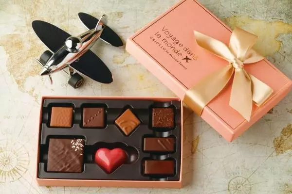クリオロのバレンタインチョコレートの注目は、”世界旅行”をテーマにしたボンボンショコラの詰め合わせ「ヴァヤージュ・ドン・ルモンド(Voyage dans le monde)」だ。