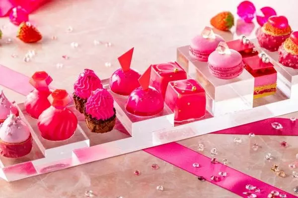 キンプトン新宿東京“まるで宝石箱”苺×チョコのアフタヌーンティー、ピンク色タルトやムース