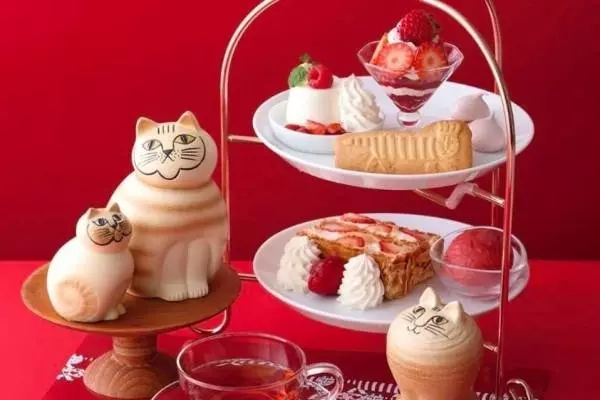 北欧の人気陶芸家 リサ・ラーソンとのコラボレーションでは、世界中から愛されている猫のキャラクター“マイキー”をモチーフにしたスイーツを幅広く用意する。