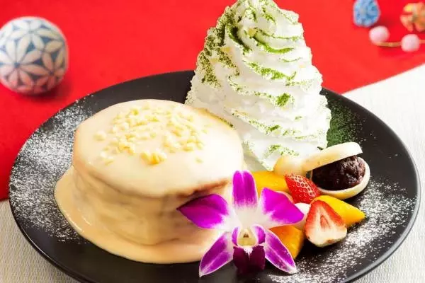 エッグスンシングス、ほうじ茶×マカダミアナッツクリームの年末年始限定パンケーキ