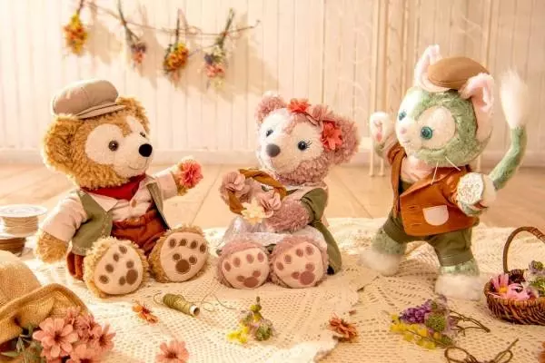 ぬいぐるみコスチュームは、それぞれに付属するシェリーメイのリース、ジェラトーニの手描きプレート、ダッフィーのドライフラワーを合わせることで、ストーリーに登場するリースが完成するという、遊び心あふれるデザインとなっている。