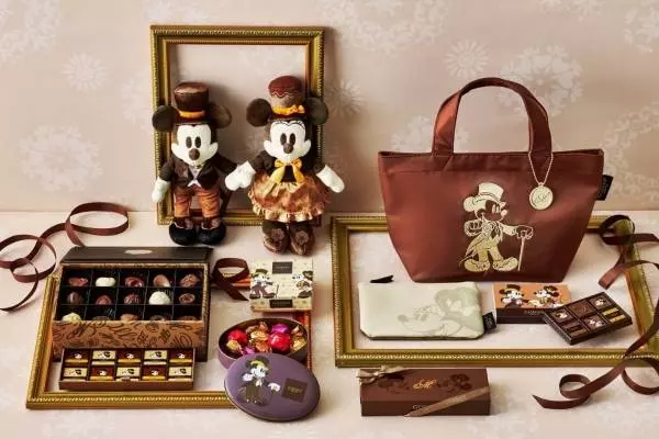 ゴディバ”チョコ色衣装”のミッキーマウス&ミニーマウスバレンタインチョコ、ディズニーストアで