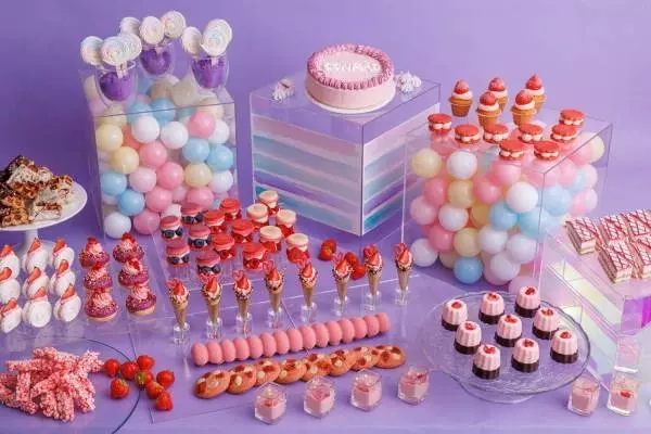 フォトジェニックなケーキに名前を記載して楽しむ文化が話題となったバースデーケーキ「センイルケーキ」も登場。パステルライラックのケーキのトップには、「CONRAD OSAKA」の文字があしらわれている。