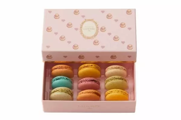 ラデュレ23年バレンタイン“ピンクのスイーツ&ハート”を描いた限定マカロンボックス