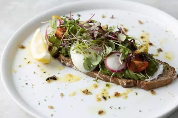 新店となる渋谷ヒカリエ店はランチ・カフェに加え、ディナーも楽しめるようなメイン料理や12種のヴィーガンおつまみなどを豊富にラインナップする。中でも注目は、これひとつでお腹も心も満たされるという「オールインワンボウル」。厳選野菜のサラダの上に、ひよこ豆のファラフェルや野菜のフムスなど、季節の食材を使用した彩り豊かで栄養満点のサラダボウルだ。