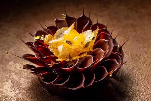 繊細な花びらを表現した“仏手柑×ダークチョコ”のショコラ