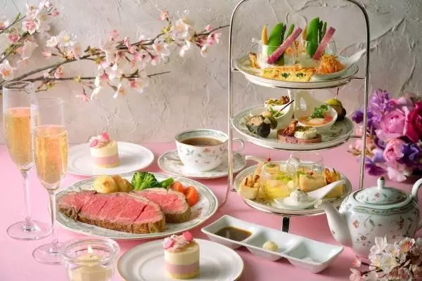 「雲の中の夜桜イブニングハイティー」ホテル椿山荘東京で、桜色パンケーキや肉厚ローストビーフ