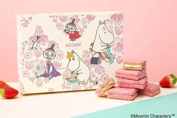 いちごミルクカラーに爽やかなグリーンを加えた、キュートなパッケージデザインにも要注目だ。春の花畑を思わせるグラフィックの上に、ムーミンママ、スノークのおじょうさん、リトルミイ、ミムラねえさんが描かれている。