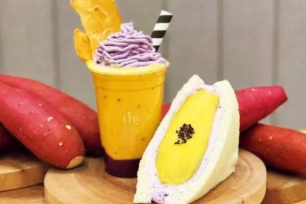 会場には、さつまいもの味わいを堪能できる、“インパクト大”なスイーツが勢揃いする。thy(ジー)からは、目利きの八百屋が厳選したさつまいもをふんだんに使った限定スムージー、やきいもサンドが登場。スムージーは、紅はるか、紫芋の2層仕立てで見た目にも鮮やかに仕上げた。