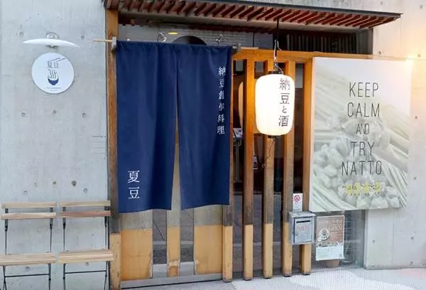 店前には、外国人観光客向けに「KEEP CALM AND TRY NATTO」というメッセージが