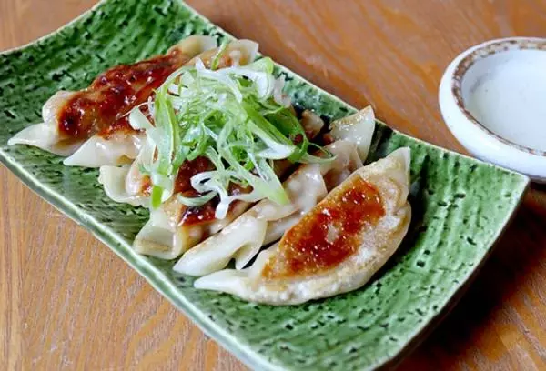先ほどの『納豆飯』のそぼろをベースにした餡を餃子の皮で包んだのが、こちらの『自家製納豆餃子』。