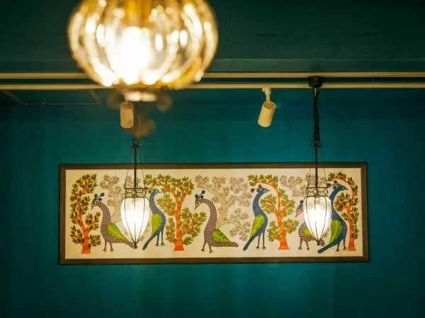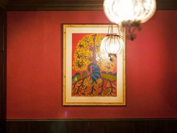 壁にかかっているのは、店名の由来になっている「ゴンド画」。インド現地で買い付けたものだそう。インドの真ん中あたり、マディヤ・プラデーシュ州周辺に住むゴンド族という先住民族が描くゴンド画(GOND ART)はアート界で人気。