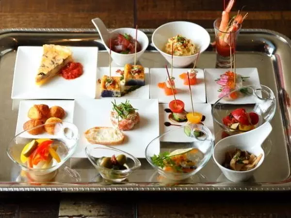 ぜひ女子会のスタートは、少量多皿ワゴンサービスのオシャレなおつまみで華やかに。豪快でジューシーな炭火焼きやサーモンとイチヂクのピンチョなど、見た目も楽しく女子トークが弾みます。