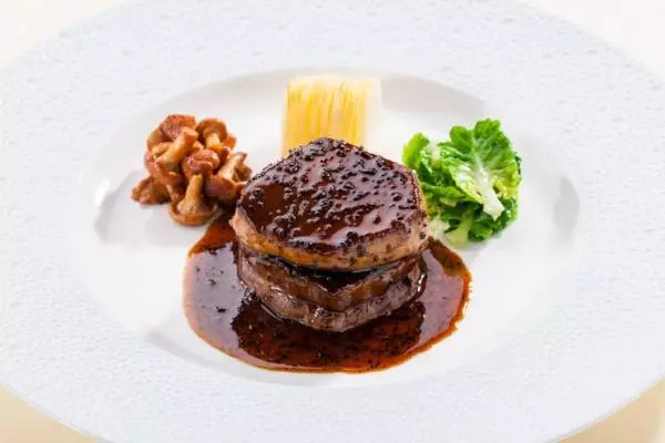 奥出雲産の牛フィレ肉にフランス産のフォアグラを合わせた贅沢な一品『牛フィレ肉のロッシーニフォアグラ添えトリュフソース』