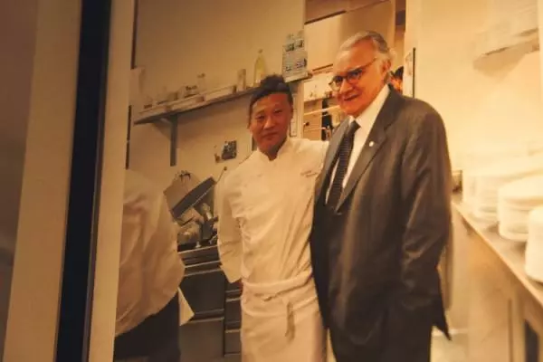 アラン・デュカス氏(写真左)に憧れながらもオルダーニ氏と「クッチーナ・ポップ」を共に追求することを決意した松本氏