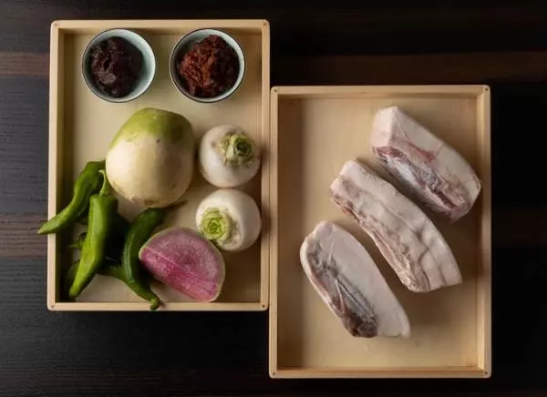 使う野菜は「旬のものがいいです」と菰田シェフ。取材日は、紅芯大根、かぶ、万願寺唐辛子の3種類の野菜を使った。あくまで、その季節の野菜のおいしさを味わうための調理なのだ