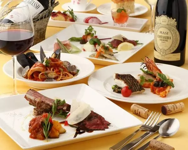 料理は季節の食材を使用したメニューを提供。9品の料理からなる5,000円の飲み放題付きコースをはじめ、乾杯ドリンクやメッセージプレートがセットの「アニバーサリーコース」などの用意もあります。