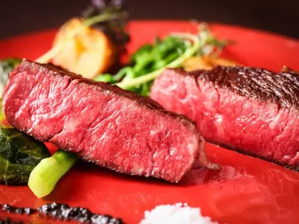 店内にある、大きな熟成庫。【又三郎】の熟成肉は、素材の状態によって熟成具合を見極め2 ~ 8週間、この熟成庫で管理される。元となる素材は、岩手・宮城・山形三県の限定した農家の黒毛和種と、現在高知県で約2,000頭しか肥育されていない「土佐あかうし」の雌牛のみという徹底ぶりだ。30分以上かけて丁寧に焼かれたその熟成肉は、口に入れた瞬間、肉の旨みと芳醇な香りがじゅわっと広がる。その肉質の良さに魅了される、同業のシェフも少なくない。