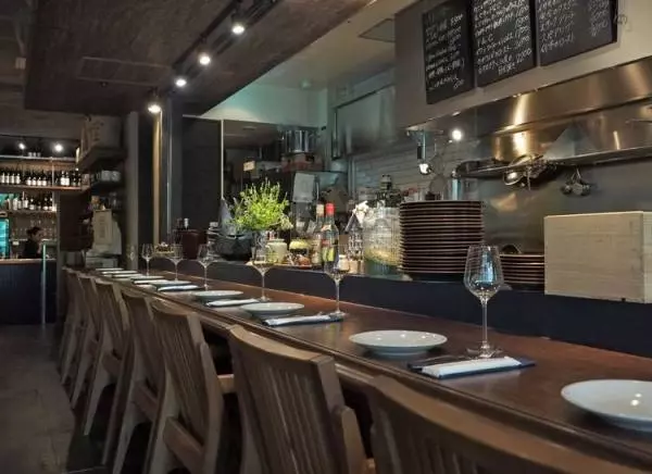 キッチンの目の前にあるシェフズカウンターはデートに最適。奥のレストランスペースは大人の女子会にもオススメです