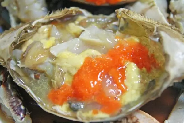 鮮度のよい内子は甲羅の中でオレンジ色が映える