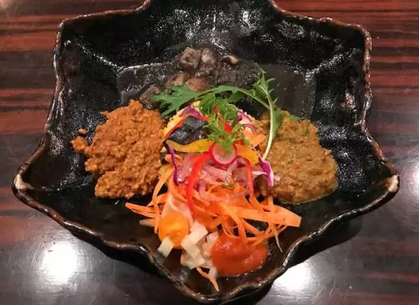 大阪スパイスカレーの個性店【はらいそSparkle】は、様々な料理の要素を取り込み、和出汁の旨味が炸裂するお酒にも合うチャンキーカリーを提供。