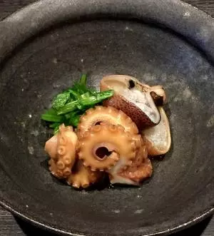 【おやこどん きだ】は夜のみの営業とあって、蕎麦屋でも提供する定番の酒肴に加え、この店限定の季節替わりの酒肴『ちょこっとおつまみ』も用意。じっくり低温で火を通し、肉の旨味を凝縮した京鴨のチャーシューや、新鮮な磯の風味を生かした飯蛸の柔らか煮など、手の込んだ一品が揃います。