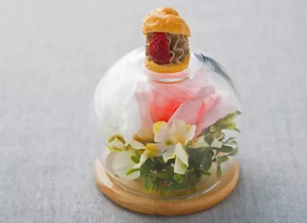 白レバーのシュークリーム『鶏レバー/苺』(アミューズの一品)。濃厚なレバームースの中に漂う苺の酸味がアクセント